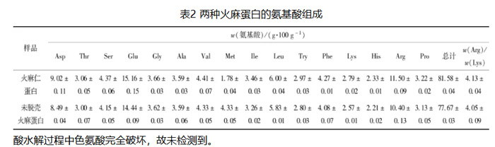 2.2 脱壳处理对火麻蛋白氨基酸组成的影响