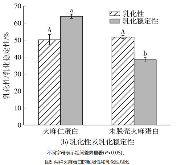 2.4.3 脱壳处理对火麻蛋白起泡性及乳化性的影响