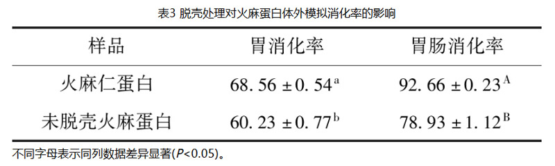 2.5 脱壳处理对火麻蛋白体外模拟消化的影响